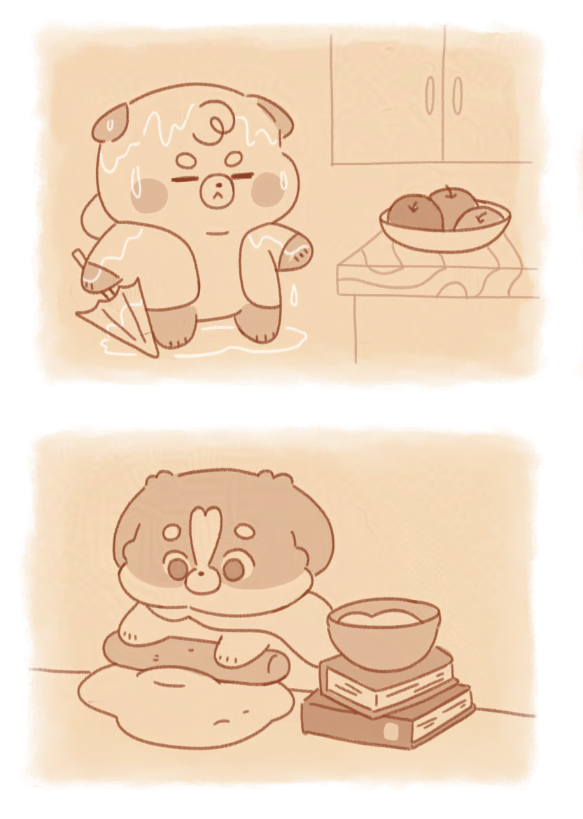 雨の日のトーストを元気づけるにはリンゴだけでは足りません。チャーリーは読書をする時間もなく、忙しすぎます。人生はあっという間に積み重なっていきますね。